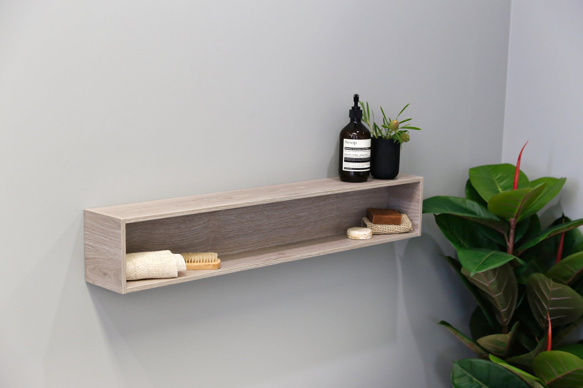 Expand your bathroom or laundry storage with the Kokoon wall mounted horizontal open shelving unit , crafted in Italy from high quality laminate.