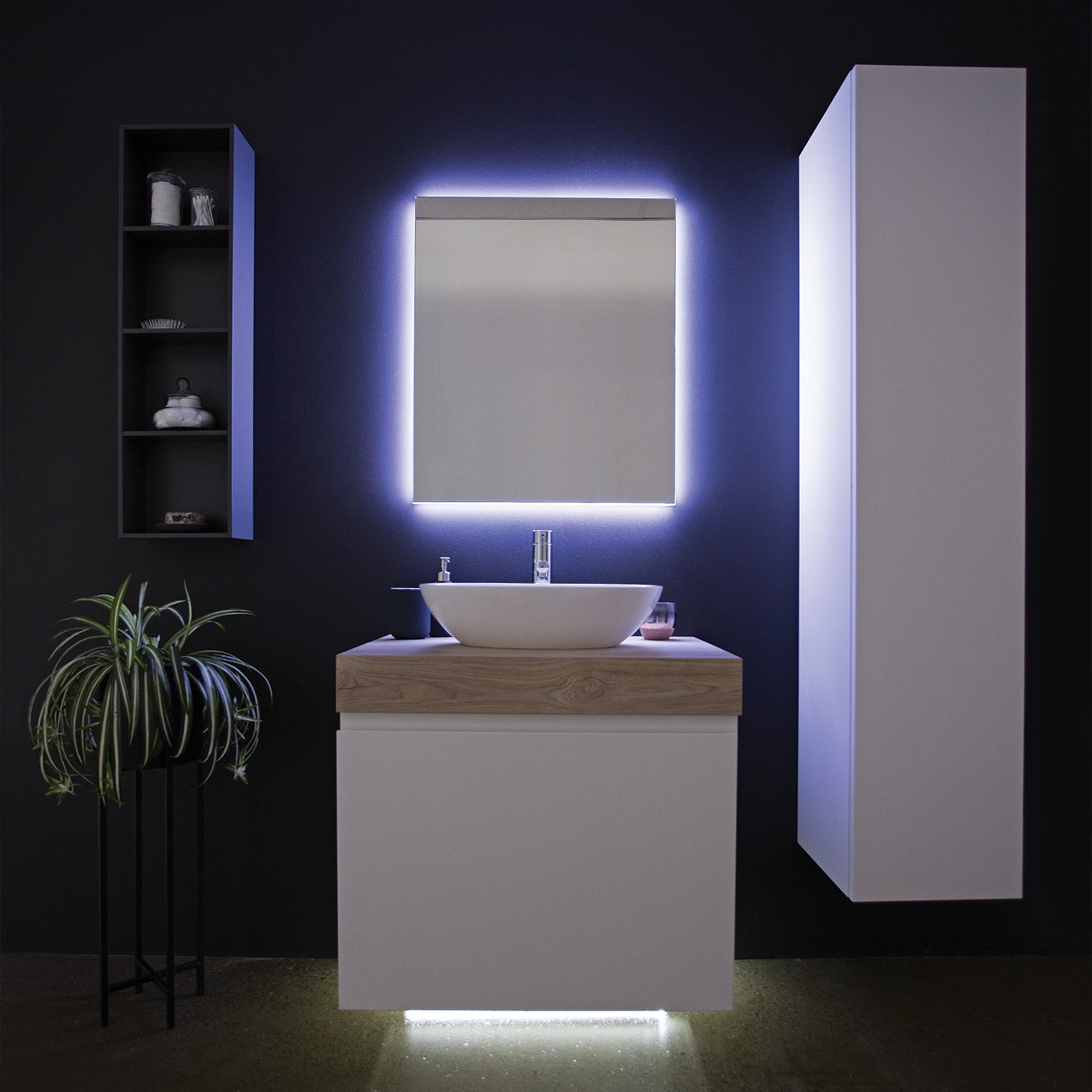 Expand your bathroom or laundry storage with the Kokoon wall-hung tallboy cabinet, crafted in Italy from high quality matt white joinery with glass internal shelves.