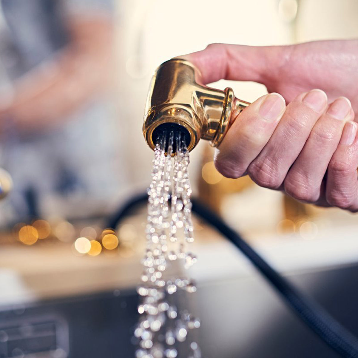 This spray rinse model includes a bench-mounted insulated spray rinse tap featuring a 1.2m flexible hose and a simple thumb-press diverter. When activated, water diverts from the main spout to the spray rinse, making it effortless to fill pots, rinse vegetables, clean oversized dishes, or water plants. Designed as part of the complete mixer assembly, the spray rinse cannot be added later to the standard Hambleton model.