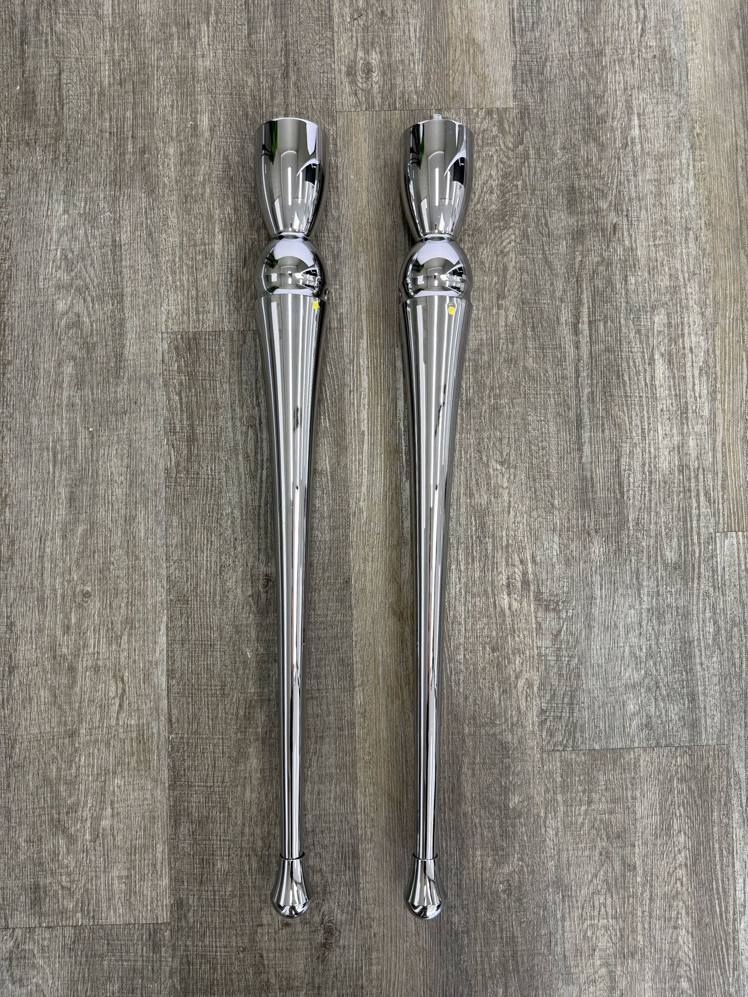 - Dual elegant spindle legs in polished chrome stainless steel