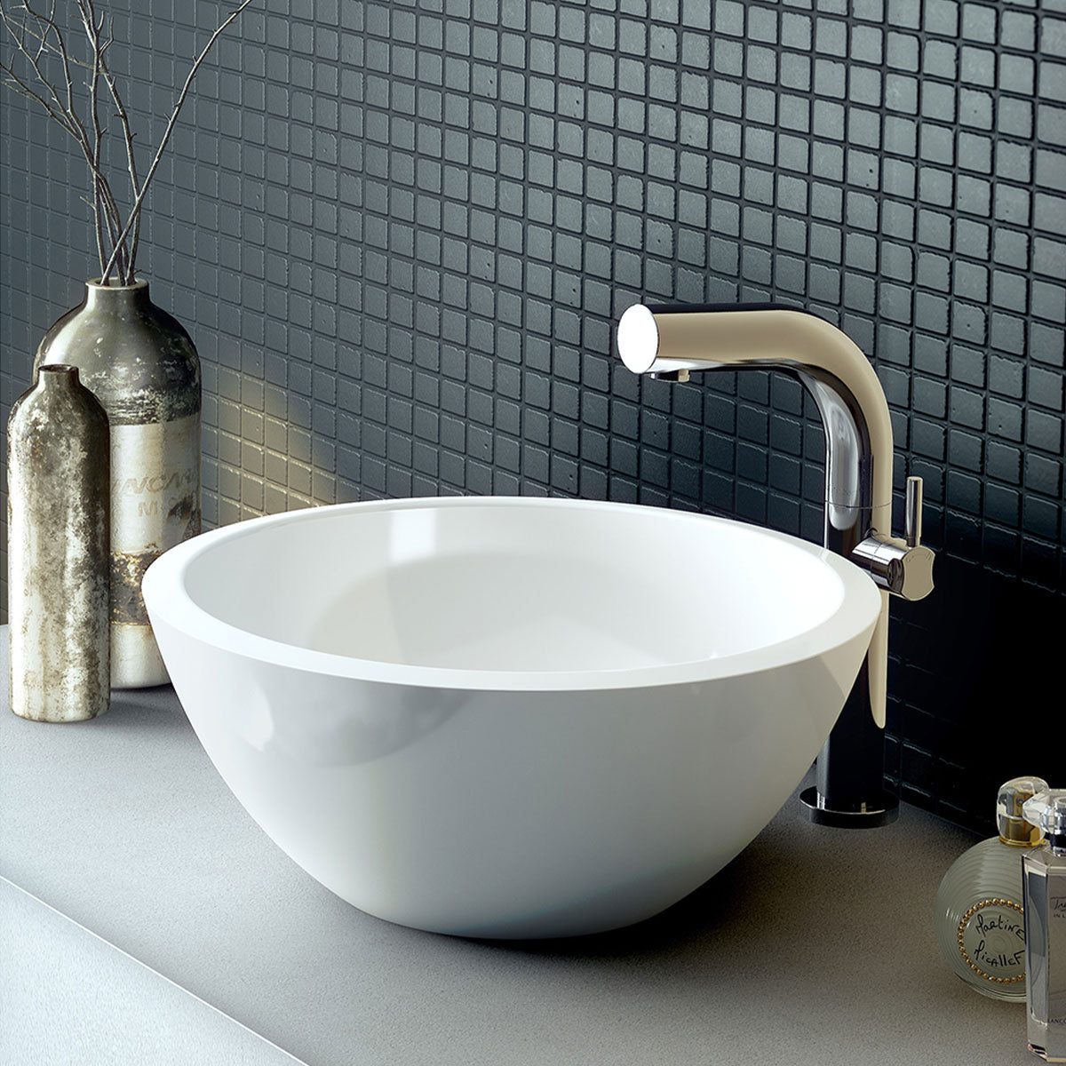 This versatile contemporary design is crafted from a single casting of volcanic limestone combined with high performance resin.