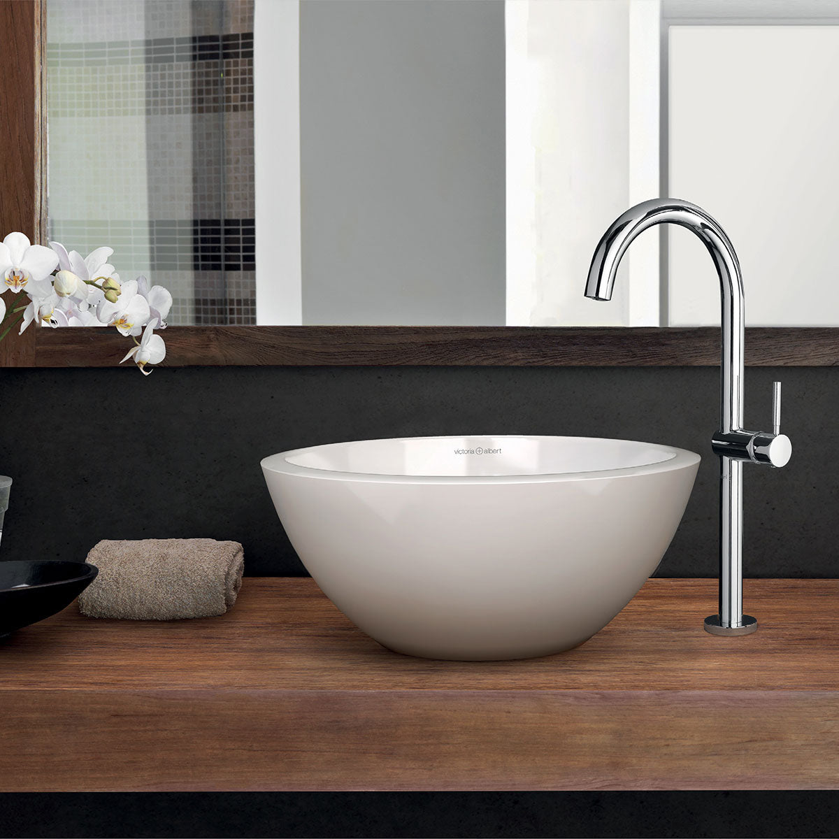 The generously deep, rimless design of the Victoria + Albert Maru 42 basin lends itself perfectly to countertop or semi-recessed installations in modern bathrooms.
