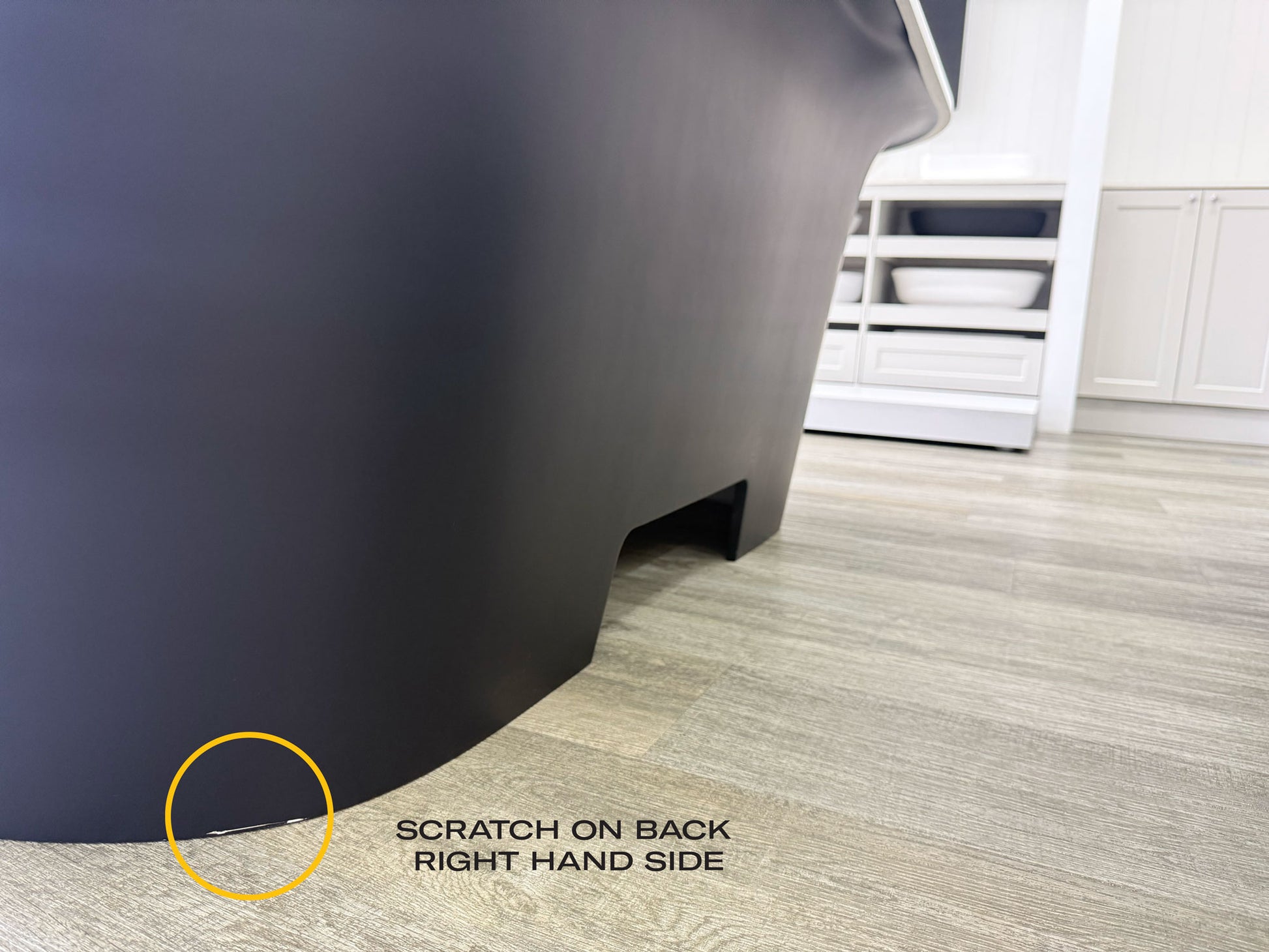 Good condition ex-display model. Chip on underside rim of bath on the left hand end, and a scratch on the back right hand side at floor level. Refer to photos for details. Neither of the defects are visible from the front once installed. Sold as is with no warranty - price reflects the condition of the bath.
