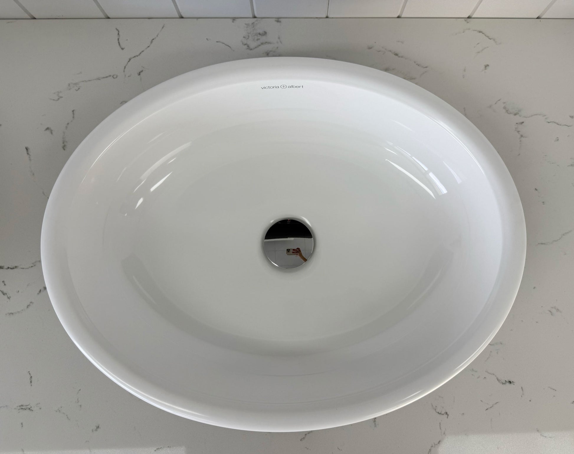 The Radford 51 is a beautifully refined countertop basin featuring a low-profile oval design and a delicate, slim rim.