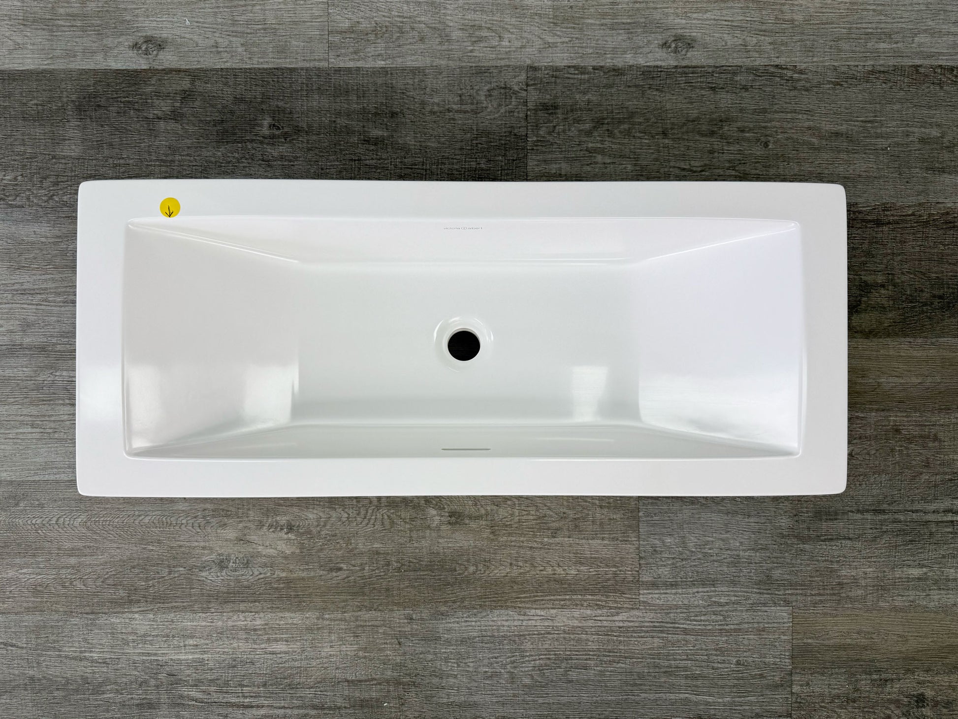 Excellent condition product with minor imperfections. There is a tiny pin hole on the interior edge of the basin on the back left hand side. It would be covered by the benchtop in an undermount installation and not visible. Refer to the included photos for details. Due to imperfections, the price reflects the condition and is sold as is with no warranty.